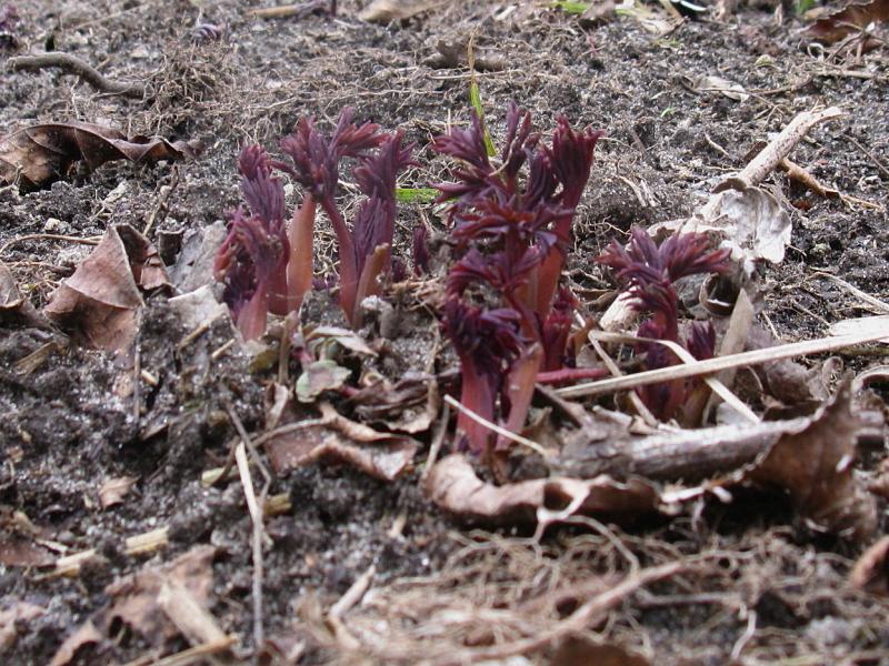 Durch Aussaat vermehrte Dicentra spectabilis kenne ich nur als sehr gleichförmige Pflanzen. Um so erstaunlicher finde ich die Abweichungen beim Austrieb meiner Findlinge, die ich gestern gezeigt habe. Hat sich mit ihnen einfach bislang niemand züchterisch befasst?