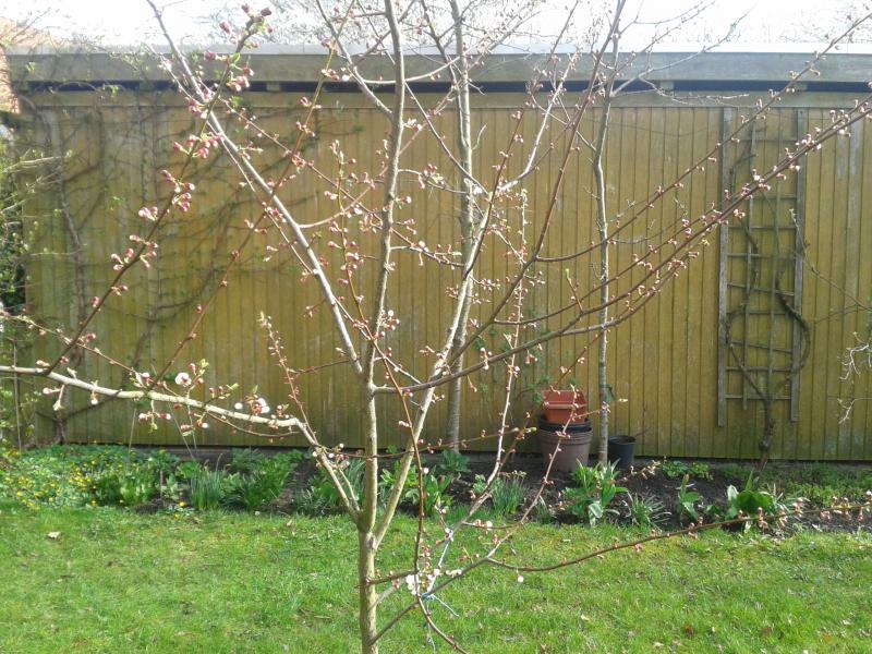 Meine Biricoccolo fängt langsam an die Blüten zu öffnen. Muss sie auch, denn die Kirschpflaume steht in voller Blüte und ich möchte gern mehr als nur eine Frucht haben. Knospen hat die genug.