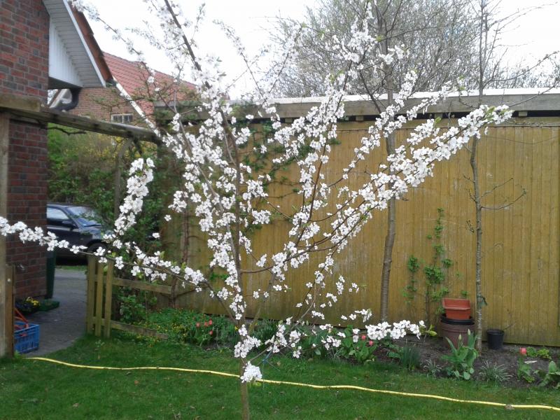 Kirschpflaume, blüht noch und meine Nachbarin hat eine Mirabelle in voller Blüte. Das wird schon. :)