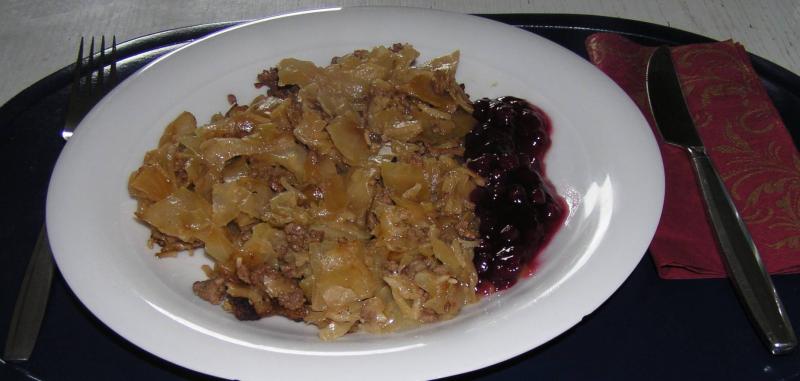 Soili hat geschrieben: ↑30. Mär 2017, 10:56 Hack-Weißkraut-Auflauf nach finnischer Art (mit Sirup und Sahne drin), dazu gibts Preiselbeeren ausm Glas.