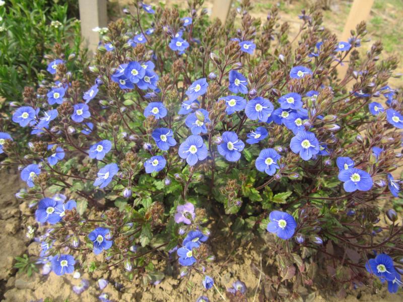 Veronica peduncularis `Big Blue´, etwas größere Blüten als `Georgia Blue´, meiner bisherigen Beobachtung im Abblühen schöner. Ob sie sich richtig dauerhaft macht, muss sich zeigen. Ist eine Sorte die meist zusammen mit anderen Frühlingsblühern wie Goldlack und Vergissmeinnicht eher im Wechselflor kultiviert wird. Ist aber definitiv hart und keine komplette Mimose.