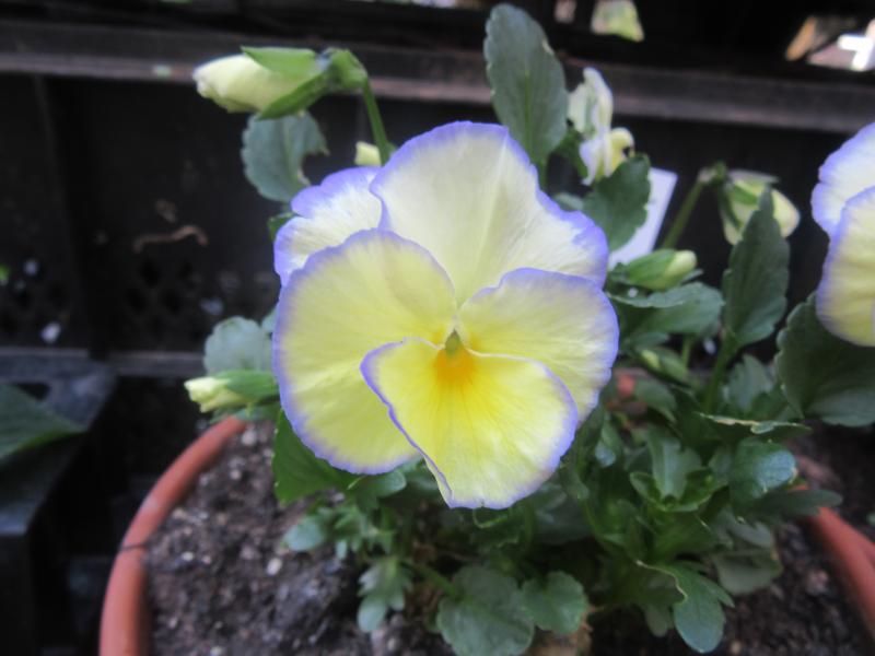 Noch was Nettes, Viola cornuta `Etain´, ich bekam letztes Jahr eine Pflanze augezwängt, welche bis zum Herbst durchhielt und weiter blühte. Habe sie erst ganz am Saisonende durch Schusseligkeit kaputtgemacht. Und dann mit ein einer Handvoll anderer Stecklings-Hornveilchen wieder neu geholt. Obwohl mich die früher Null interessiert hatten. Wachsen vorerst im Topf.