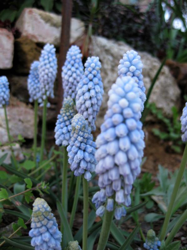 Die rosa Muscaris blühen heuer als Einzige überhaupt nicht, haben nur Laub gebildet.