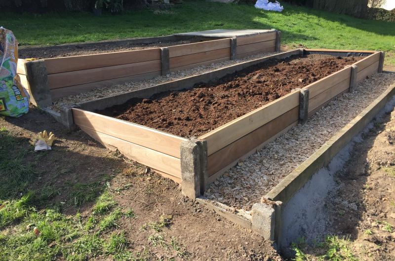 Die beiden anderen Beete werden in nächster Zeit aufgebaut und parallel plane ich die weitere Bepflanzung und Aufteilung.