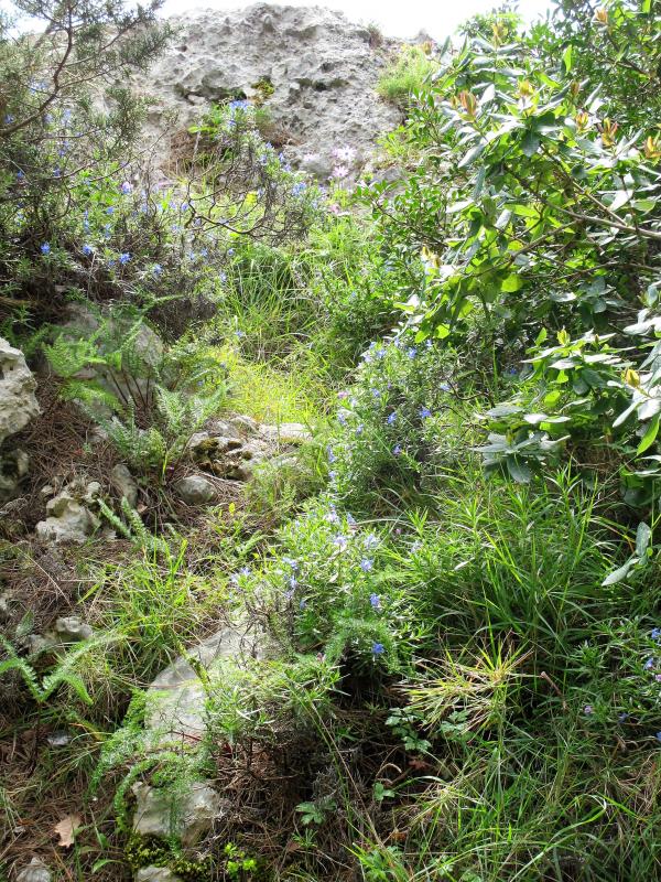Eines der botanischen "Wunder" waren die leuchtend blauen Büsche Lithodora rosmarinifolia, die oftmals an den Felswänden insbesondere auf der Seeseite "klebten"