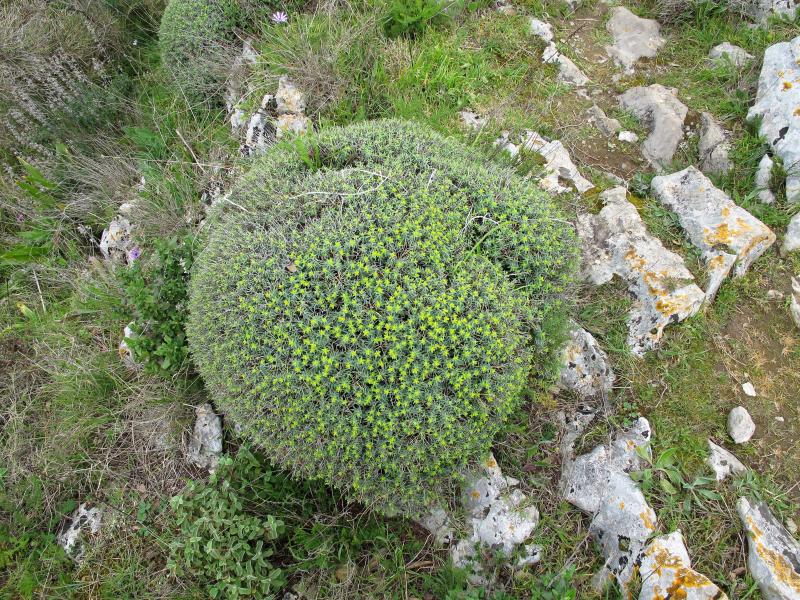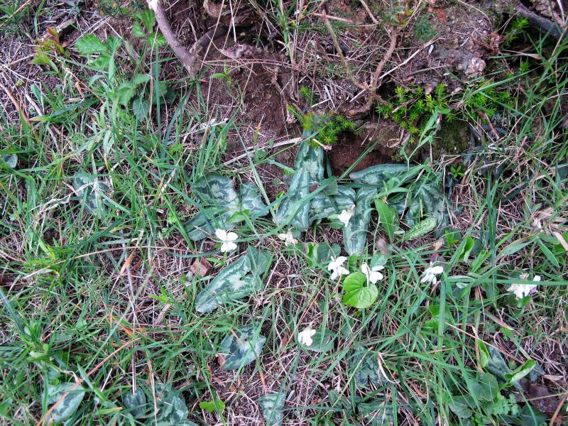 Oben, in der Gipfelregion (und auch sonst überall auf der Insel), gibt es riesige Bestände an Alpenveilchen. Man müsste Zeit und Muße haben und auch die Sammlerfrechheit, die Cyclamen mit den prächtigsten Blattformen und -farben auszubuddeln.