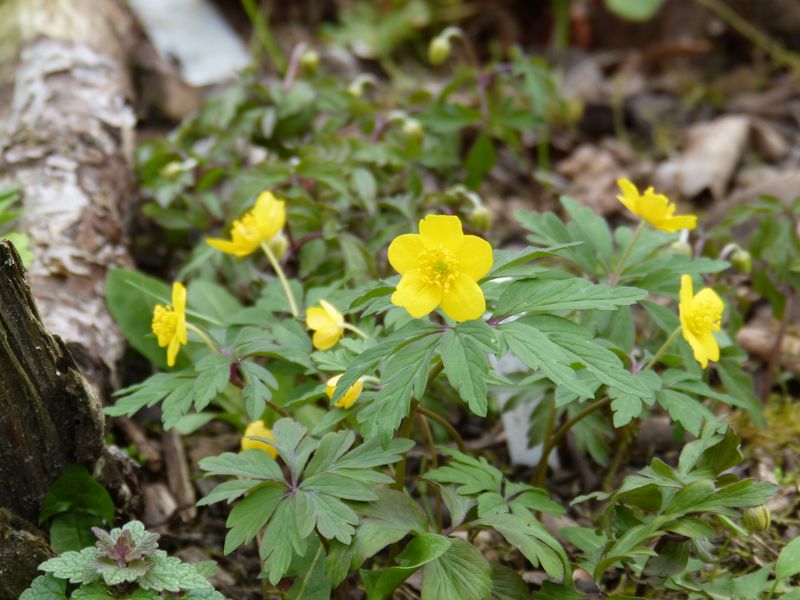 Anemone x lipsiensis 'Schwefelfeuer' ist hingegen schon eine Weile zugange.