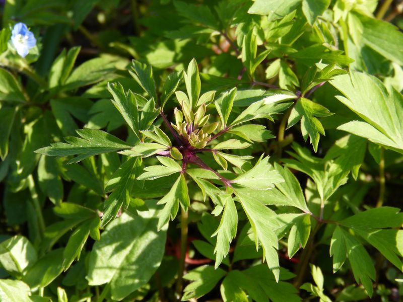 An einer Stelle, an der ich eigentlich A. n. 'Vestal' gepflanzt habe, blüht nun plötzlich Anemone ranunculoides. Da waren wohl ein paar falsche Rhizome mit in der Tüte.