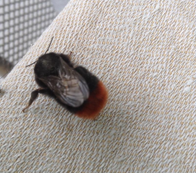 Ich fand sie auf der Terrasse am Boden, ihre Bewegungen waren sehr langsam, wie in Zeitlupe, und ich habe sie länger beobachtet. Sie ist ständig mit den Hinterbeinen über Kopf und Rumpf gefahren, wie um sich zu putzen. Kopf und Rumpf sind tiefschwarz, der Hinterleib rostrot.