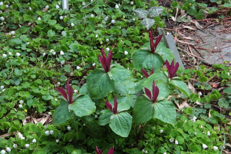 Heute habe ich bei unserem Trillium grandiflorum eine Blütenknospe entdeckt. Wenn man schon mal 3 Tage keinen Kontrollgang macht . . . . . Ich glaube sogar, daß es ein gefülltes ist. Schaun mer mal.
