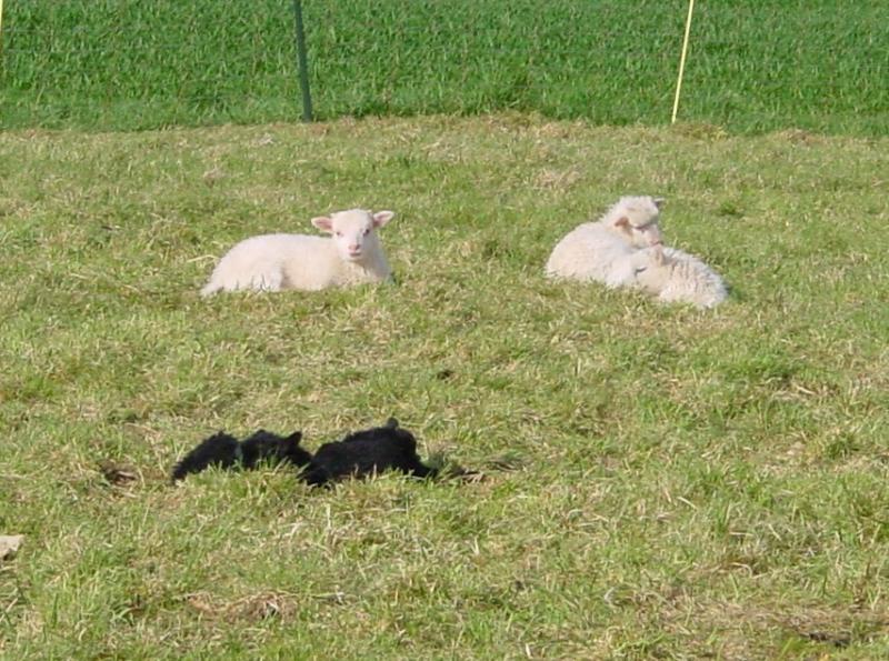 Was wollten wir mehr: Strahlende Sonne, lauter lustige Lämmer... in den unterschiedlichsten Altersstufen. :P Das ist nicht unbedingt ein Problem - die am letzten Sonntag geborenen Chillie und Pepper (schwarz, im Bild vorn) sind mindestens so fit wie die nunmehr 4 Wochen alten WGH´s . Die reichlichen Besucher sind ganz ungläubig... wie, SO jung?