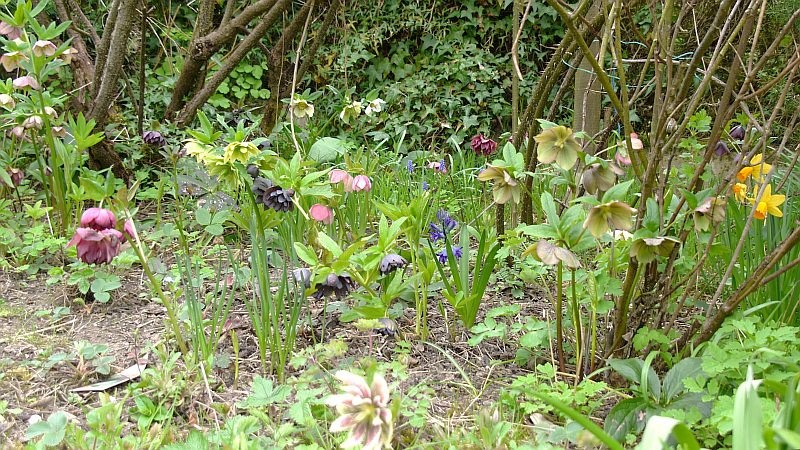 Mein Vorgarten hingegen ist erst letzten Herbst entstanden, über den Sommer wird es sicher etwas leer aussehen, aber ich wollte für den Frühling ein Feuerwerk haben, und das ist mir offenbar recht gut geglückt. Interessant finde ich, dass die roten Tulpen zufällig so eine Höhenstaffelung ausgebildet haben, das mag an der Qualität der Discounter-Zwiebeln gelegen haben (eine ist gar nicht gekommen), aber solche Zufälle sind das Salz in der Suppe. ;)