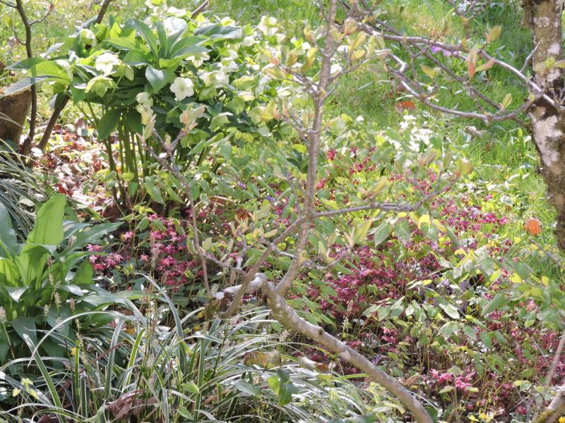Ein Ahorn bremst jede Pflanze. Ich habe E. v. ´Sulphureum` vor Jahrzehnten als Ableger von meiner Mutter bekommen, inzwischen kann ich an vielen verschiedenen Standorten das Verhalten testen ;) ;D Viel Schatten bremst v.A. die Blüte. An einem Standort unter einer Tsuga canadensis gibt es kaum Blüten, aber der Winteraspekt ist wirklich nicht zu verachten. Es sieht einfach gut aus über den ganzen Winter. Ich habe es an vielen schattigen Stellen stehen, überall viel attraktives Laub, wenig Blüten.