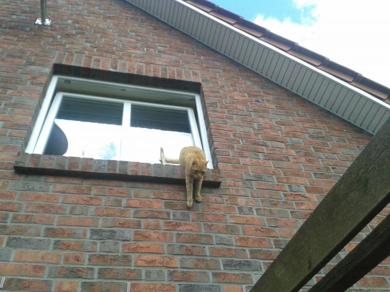 Unser Willi wollte mal wieder hoch hinaus. Er saß vor meinem Küchenfenster im ersten Stock