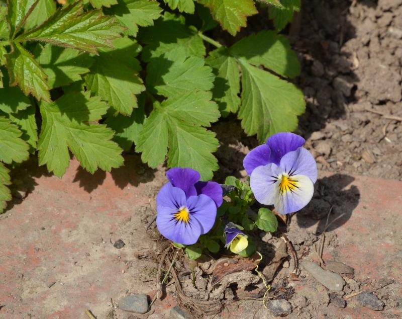 Am Weg um das Gartenhaus stehen Omphalodes verna und ein Lungenkraut. Ursprünglich war dort Pulmonaria rubra. Inzwischen hat sich eine "bunt" blühende Sippe ausgekreuzt.