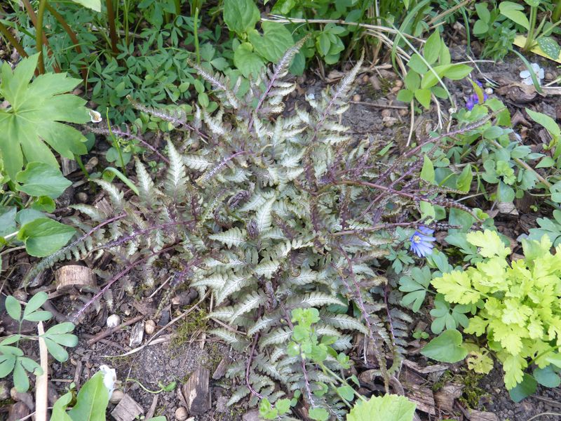 Die Athyrium niponicum sind hier schon voll da. Nächste Woche wird das anders aussehen. :'(