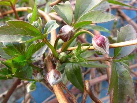 auch die Montana Rubens hat schon erste Blütenknospen gebildet. Ich war eben total überrascht. Mir kommt es vor, als hätten sie sich über Nacht gebildet