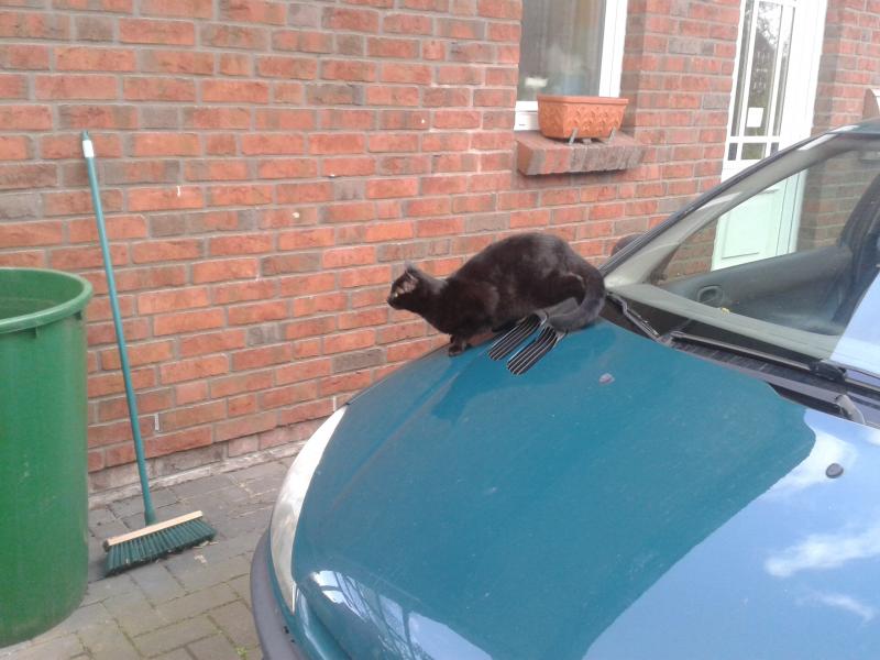 Ich hab den Frosch zurück in den Teich gesetzt aber irgendwie war Willi hinterher bisschen plemplem. Geht ihm aber gut. Wäre wohl schlimmer gewesen, wenn er den gefressen hätte