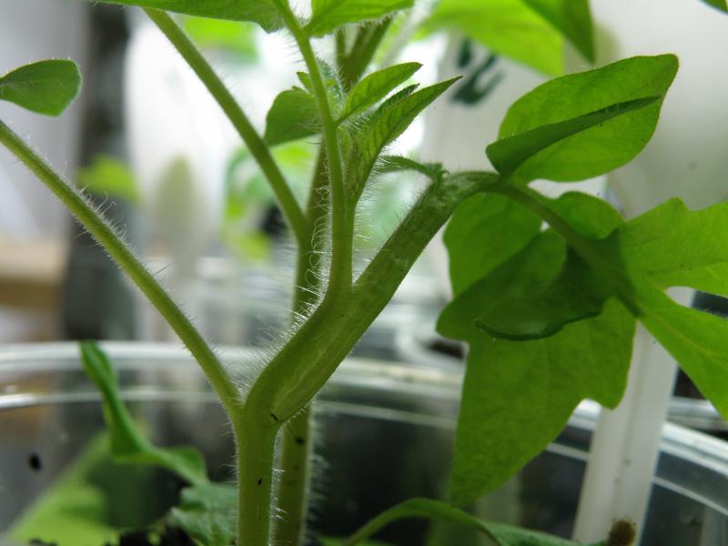 Bei einer meiner Tomatenpflanzen fand ich gestern ein erstaunliche "Verwachsung". Da bin ich ja mal gespannt, ob sich das auch an den Früchten zeigen wird (so wie z.b. beim Zwillingszucchini)
