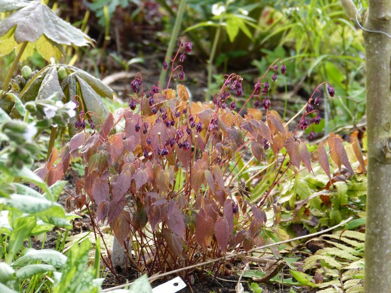 Hier blüht dank wirksamer Abdeckung gerade ein hübsches Epimedium auf, dass ich als 'Kotobuki' bekam. So ganz sicher bin ich noch nicht, ob das mit den Bildern übereinstimmen wird, die man im Netz so findet. Von den gerade aufgehenden Blüten her könnte es passen.
