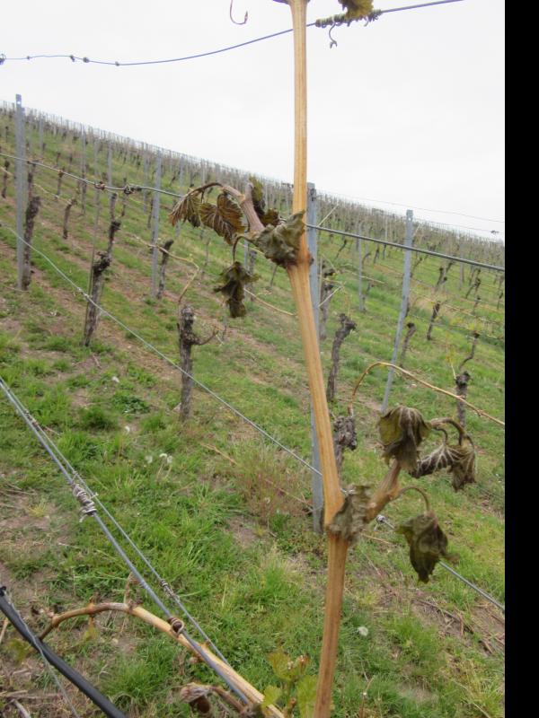 Auf dieser Seite des Oberrheins liegen die Schäden an den Reben je nach Lage bei 5 - 90 %, wobei 5 % eher die Ausnahme sind.