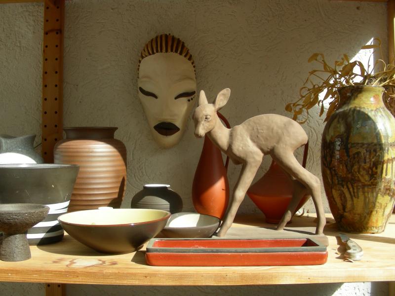 von der Großen Tochter wurde ich genötigt zwei Exemplare Wormser Terra Sigillata zu behalten, mit der Begründung, dass ich so viel über die Geschichte weiß. Das eine ist die Replik eines römischen Weinkruges und das andere eine typische schlanke 50er Jahre Version. Geschichte und Wissen finde ich nicht mehr so wichtig, ich übe jetzt das Konzept Nichtwissen.