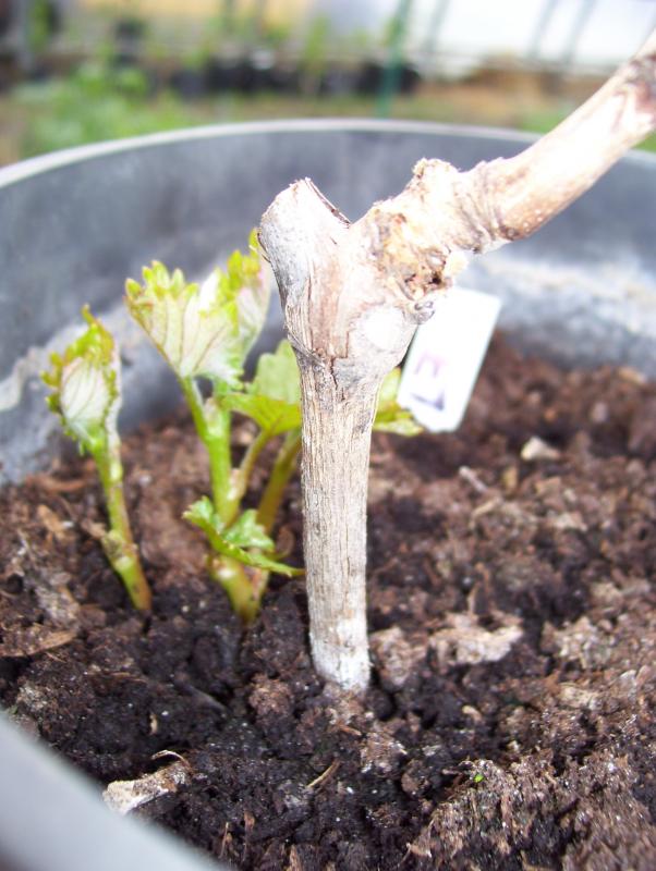 Habe den Rat von Jacob befolgt, seine im Herbst gelieferte Rebe erstmal ins GWH zu setzen.