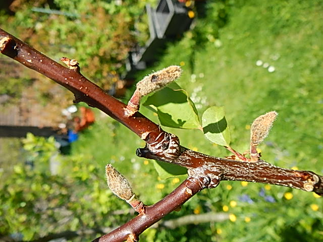 Ich habe mir heute noch mal unsere Aprikosen angesehen. Wir hatten letzte Woche auch eine Frostnacht, mit Rauhreif im Garten am nächsten Morgen, auch auf den Dächern. Wie kalt es in unserem Garten war, weiß ich nicht. Ich vermute, 1-2°C unter Null. Die Aprikosen waren beide gerade verblüht.