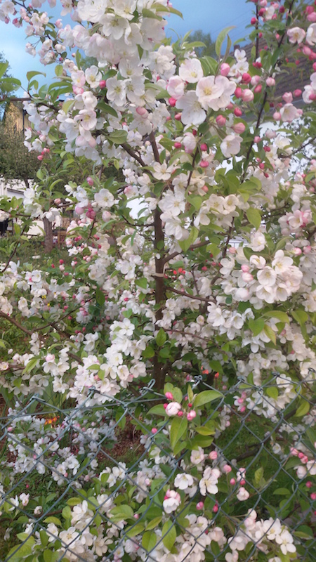 Uuups, einer meiner Zierapfelsämlinge blüht schon. Damit habe ich erst in einigen Jahren gerechnet.
