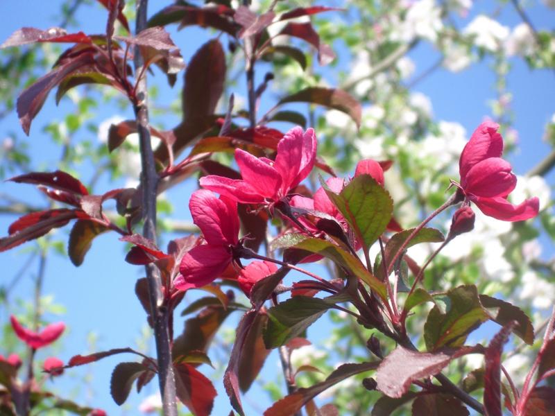 Dieser Malus hier auf dem Foto blüht ebenfalls rot und treibt mit zunächst kupferfarbenen Blättern aus, die aber später vergrünen. Er trägt relativ unscheinbare sehr dunkle Früchtchen. Leider finde ich momentan nur dieses ältere Foto. Vor einigen Jahren hatte ich ich ihn hier im Forum auch mal zur Bestimmung eingestellt und von 'oile' kam damals ein Hinweis, dass es sich evtl. um 'Liset' handeln könnte. Vielleicht vergleichst Du mal Bilder im Netz, Stephan HH. Erhalten hatten wir dieses rotblühende Exemplar allerdings unter dem Namen 'Gorgeous'. (Passte leider irgendwie nicht so ganz)