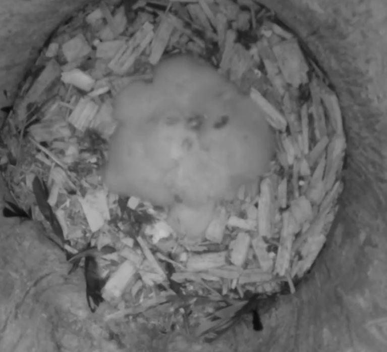 Bei den Waldkäuzchen sind gestern und heute jeweils 1 Küken geschlüpft. 2 stehen noch aus.