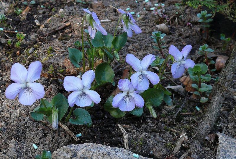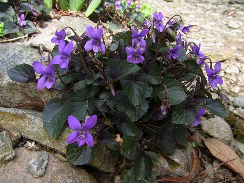 Außerdem blüht ein violettrotes Veilchen, dass hier schon immer wuchs, aber nur an einem etwas abseits gelegenen Abbruch, eher wenig sonnig, (auf Rohboden am liebsten). Was könnte dies für ein Veilchen sein? Ein Pfingstveilchen?