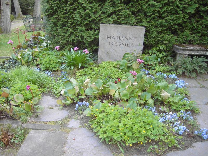 Im linken Teil der Grabanlage hat Marianne Foerster, Karl und Eva Foerster's Tochter ihre letzte Ruhe gefunden.