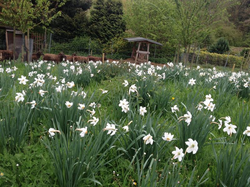Trotz Regen mal endlich ein Foto der Narcissus poeticus recurvus -Wiese gemacht! :)