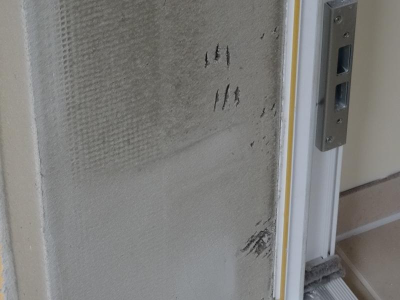 Das Fremdschämen geht in die nächste Runde. Natürlich konnte der Wandputz so glatt nicht bleiben. Die Aufnahme stammt von heute, also nach der Ausbesserung.