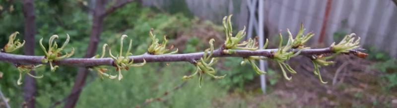 Verkümmerte, kleine, eingerollte Triebe an zahlreichen Obstbäumen und -sträucher