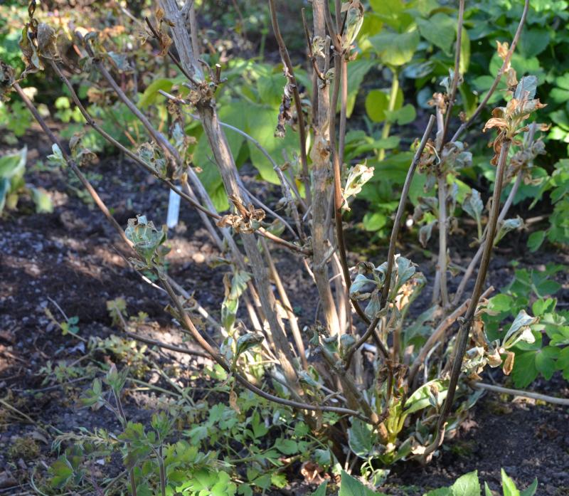 Bei mir ist es die Samthortensie `Hot Chocolate`die einen Totalschaden hat. (Werde sie wahrscheinlich entfernen, weil sie durch die letzten Sommer immer mein Sorgenkind war betr. Giessen.)