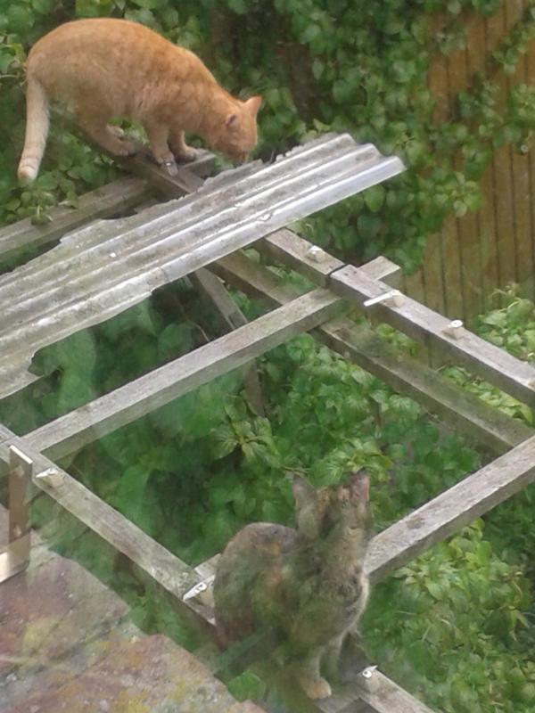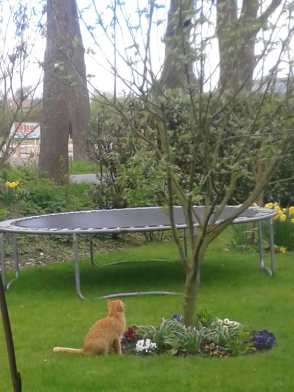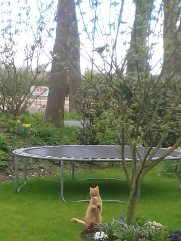 Thommy war gerade da, aß gut 200 g Naßfutter, trank seine Milch und versucht jetzt eine der Hausmäuse zu fangen.