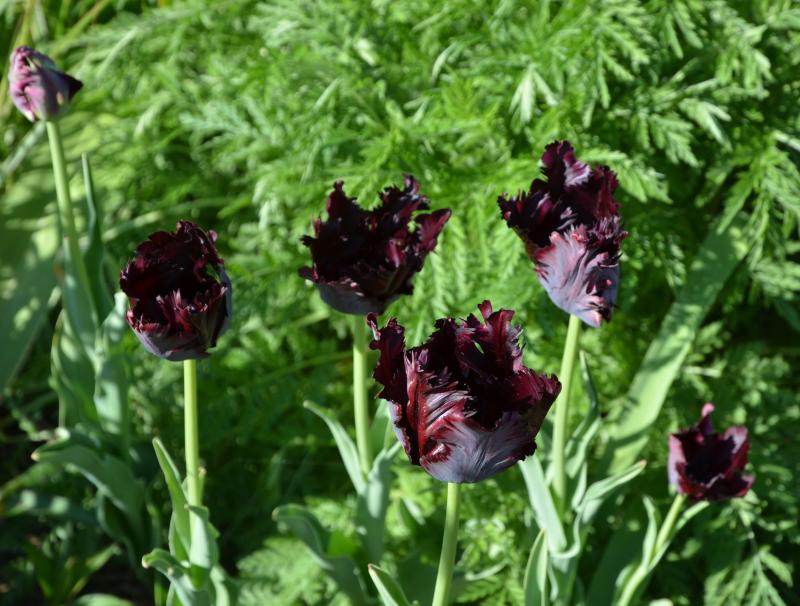 Diese dunklen Tulpen sind einfach schön. Wenn da das Sonnenlicht reinscheint und es durch die Blütenblätter schimmert.