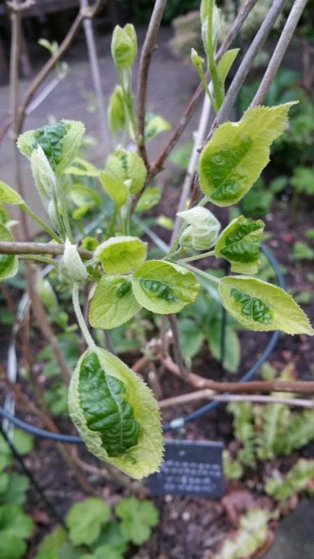 Viele Hortensien mit sichtbaren Frostschäden treiben hier bei dem wärmeren Wetter schon wieder durch.