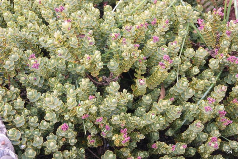 diese Hebe - einen Namen kann ich leider nicht ranschreiben - zeigt Blütenknospen. Sie wächst mehr breit als hoch.
