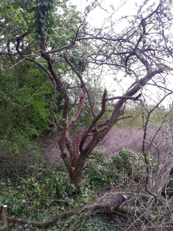 Ich werde die Bäume erstmal von den riesigen Mengen Efeu befreien und abwarten welche Früchte sie tragen werden.