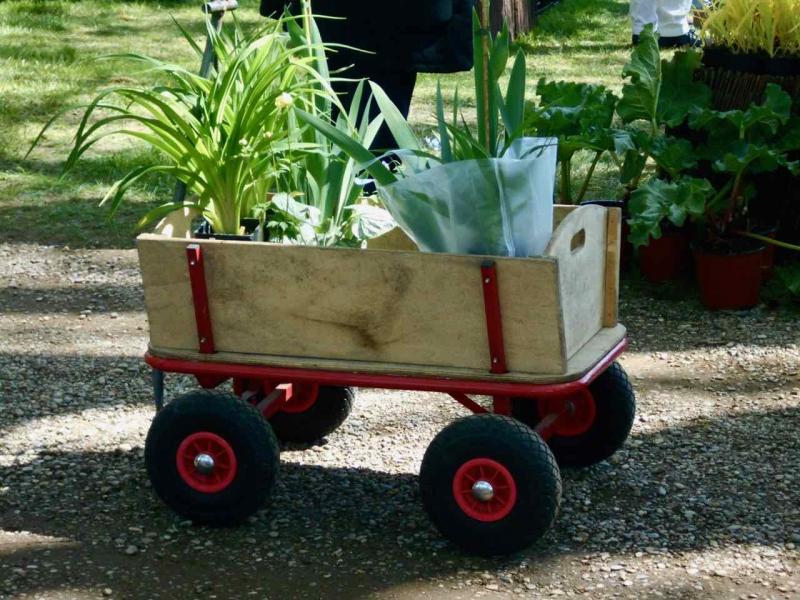 Zum Ausgang strömten Menschen mit Tüten und Taschen voller Pflanzen: