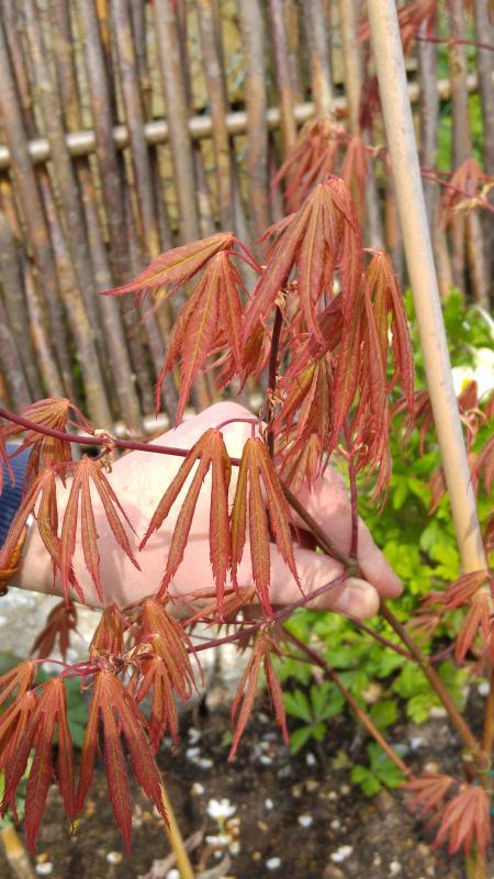 Hast Du einen rot- oder grünblättrigen Acer? Unser wäre grün und er bemüht sich schon grüne Blättchen nachzuschieben.