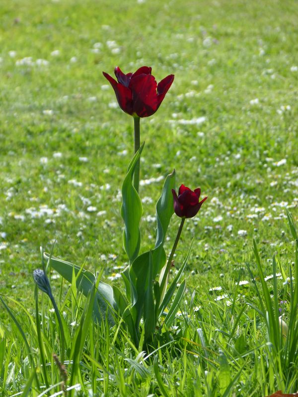 Weißt du den Namen deiner roten Tulpe? Sieht sehr gut aus zu dem dunklen Laub. :D