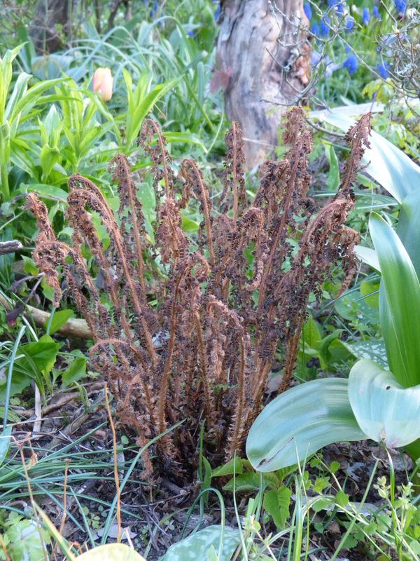 Er kriegt ne dicke Laubschüttung drauf im Herbst und eine Plexiglasplatte drüber, damit der Laubschutz nicht zu sehr durchfeuchtet - hatte ich im ersten Winter nicht gemacht und es erfolgte sehr spät und recht spärlich der Neuaustrieb, letztes Jahr mit Abdeckung war er früher und kräftiger.