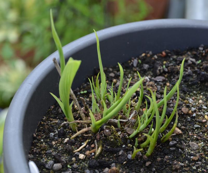 Einen Teil der Hostas hab ich jetzt schon mal in die sehr sonnige Ecke der Terrasse gestellt.