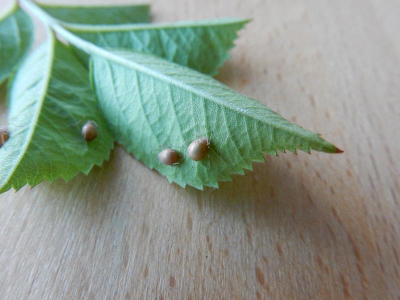 Soeben eine mir unbekannte Art an der Unterseite der Rosenblätter entdeckt
