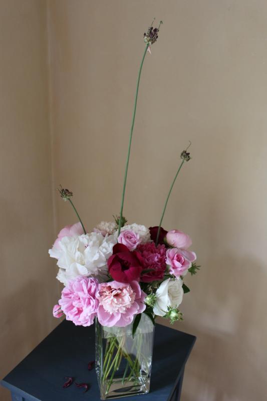Ein blasser Strauss mit Lovely Green.Die bleibt fast statisch und geht selten weiter auf.