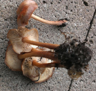 Die Bilder unter "Braunem Rasling" passen sehr gut, aber der Zeitpunkt des Auftretens wird überall mit Spätsommer bis Herbst angegeben!